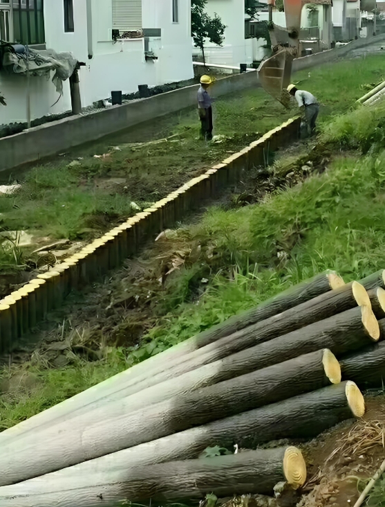 - 松木樁批發廠家泓樺錦嘉-松木樁樁尖為什么要削成三棱錐?